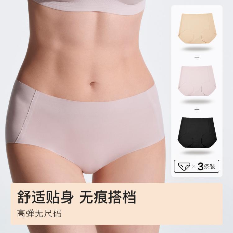 【3A级抑菌棉质底裆】3条装无尺码中腰平角裤无痕女士内裤女