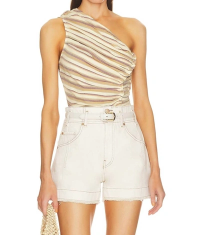 Ulla Johnson ISLA 上装 – Positano - Beige. 尺码 8 (also – 0, 2, 4, 6, 10). 印度制造. Hand wash. 身侧暴露摆缝拉链开合. 单肩款式. 轻薄亚麻面料. ULLA-WS373. SP230242.