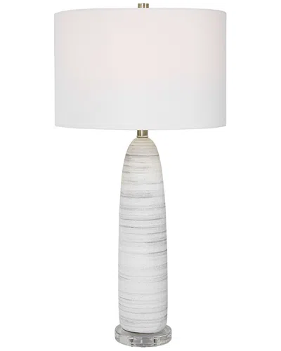 Color/Finish: White Part Of The Levadia Collection Design Details: This Sleek Ceramic Table Lamp Features A Matte White Glaze With Brushed Light Gray Detailing, Paired With Brushed Nickel Plated Accents And A Crystal Foot. Measures 15In X 15In X 31.5In White Crystal, Metal And Ceramic Base Shade Measures 10In High; Top Measures 15In X 15In; Bottom Measures 15In X 15In Round Drum Hardback Shade In White Fabric Requires One 150W Bulb; Not Included Hardwire Installation Hardware Included Ul Approved Imported