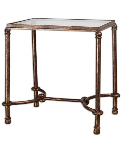 Part Of The Warring Collection Color/Finish: Iron, Rustic Bronze Design Details: Inspired By Ancient Horse Bridles, This Forged Iron End Table Is A Blending Of Rings And Curves Finished In Rustic Bronze Patina; The Top Is Made Of Clear, Tempered Glass. Measures 19In X 25.25In X 26In Made From Metal And Tempered Glass Wipe Clean Assembly Required Imported