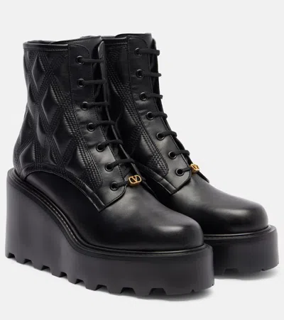 VALENTINO GARAVANI Valentino Vlogo Leather Platform Boot In Black