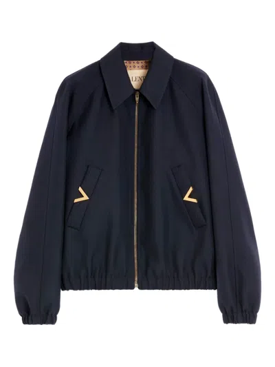 VALENTINO Wool Blend Blouson Jacket Featuring Pockets In Multi
