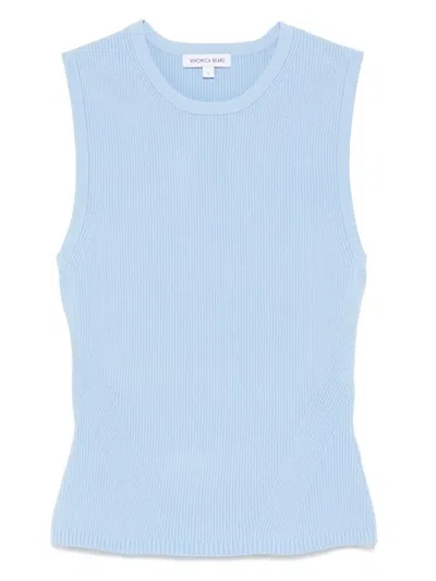 浅蓝色 圆领 无袖 平直下摆