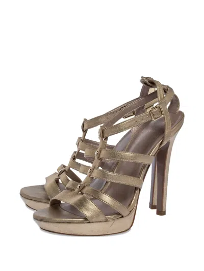 金色 漆皮 笼形设计 扣环踝带 厚底 铆钉镶嵌 状态:很好。这款典藏臻品商品状态很好,略有使用痕迹,可能存在于材料或电镀褪色及划痕。