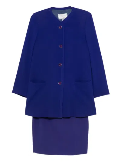 约1990年代 紫色 羊毛 正面饰有纽扣 盖袋 直筒半身裙 状态:非常好。这款典藏臻品商品状态非常好,无损坏迹象或使用痕迹。