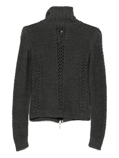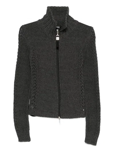 约2000年代 灰色 棉 高领 拉链开合 针织纹理 镂空细节 长袖 状态:很好。这款典藏臻品商品状态很好,略有使用痕迹,可能存在于材料或电镀褪色及划痕。