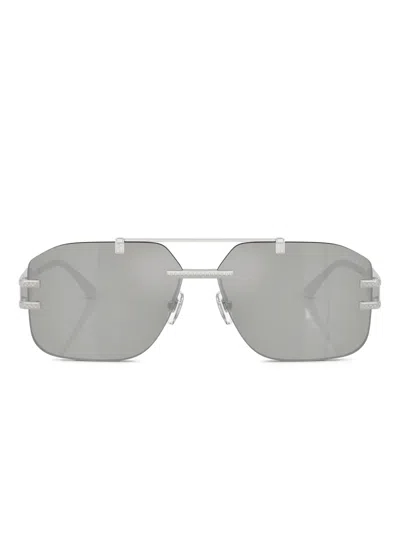 VERSACE 60mm Rectangular Sunglasses In Silver