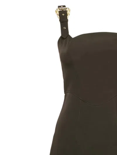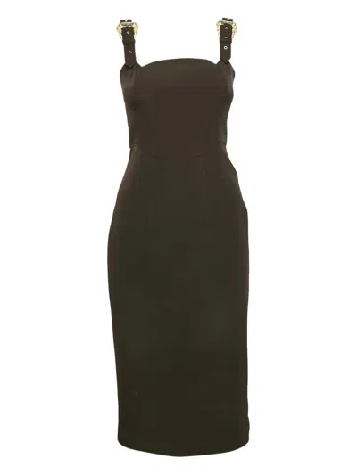 褐色 绉纱面料 无袖设计 扣环点缀 中长