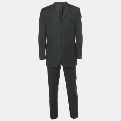 Pre-owned Versace Black Pinstriped Wool Classic Cv2 Suit Ex