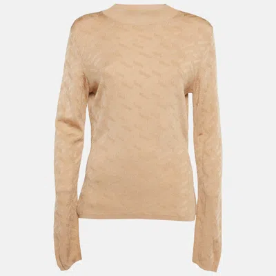 Versace's rib knit sweater in dark beige offers understated luxury with a fitted silhouette and subtle texture. Versatile and cozy it seamlessly transitions from casual layering to elevated styling.