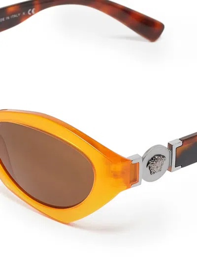 orange acetate geometric frame brown lenses tortoiseshell temples Condition: GOOD. This previously owned and used item is in good condition with minimal signs of use. This may include fading of material or plating and scratches.