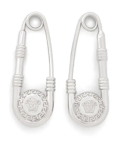 银色 金属 抛光效果 标志性美杜莎别针细节 别针扣 佩戴须有耳洞 这款商品为双只耳环。