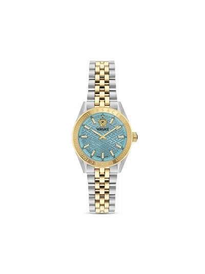 36mm stainless steel quartz movement baton dial baton hands signature Greca detailing Medusa Head motif round face screw-down crown engraved bezel stainless steel link bracelet clasp fastening This item comes with a standard one-year warranty from the brand.