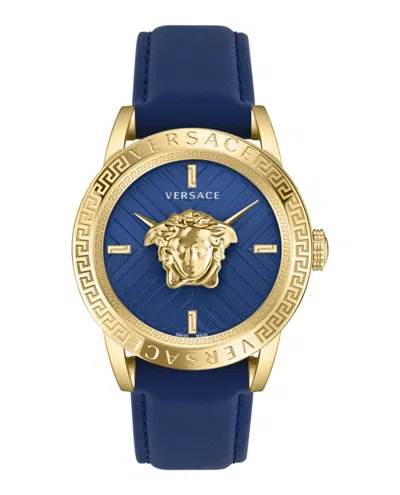 DETAILS 43mm IP Yellow Gold Case Blue Calf Leather Strap Blue Guilloche Dial 5 ATM Ardillon Buckle 2 year limited warranty + 2 Swiss Made 2 Hand Quartz Movement