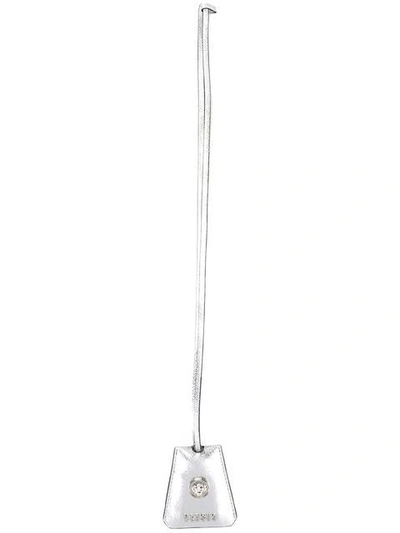 Silver-tone calf leather and metal metallic logo tag from Versus.