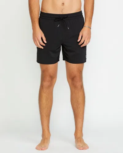 Volcom Lido Solid Trunks 16 - Men's Swimwear Sets : Black : The primary materials that compose this product contain a minimum of 20 percent recycled content. ; ; Get ready to make a splash wearing the Volcom Lido Solid Trunks 16! These trunks are designed for all-day wear, with an elasticized waistband and drawstring to keep you comfortable and secure. The two-way mechanical stretch technology allows for freedom of movement, while the two hand pockets provide convenient storage for your essentials. ; Pull-on style. ; Back patch pocket with flap. ; Brand logo on the left leg. ; Brand woven label on the right leg. ; 54% polyester, 46% recycled polyester. ; Machine washable. ; Imported. ; If you're not fully satisfied with your purchase, you are welcome to return any unworn, unwashed items in the original packaging with tags and if applicable, the protective adhesive strip intact. Note: Briefs, swimsuits and bikini bottoms should be tried on over underwear, without removing the protective adhesive strip. Returns that fail to adhere to these guidelines may be rejected. | Volcom Lido Solid Trunks 16 Men's Swimwear Sets Black : LG, Polyester