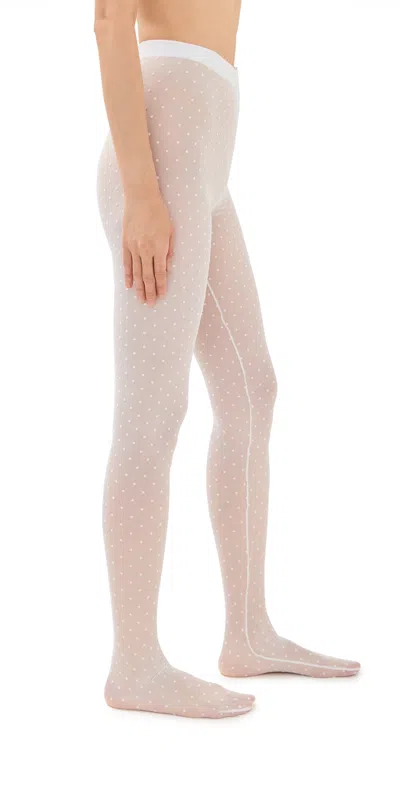 WARDROBE.NYC Polka Dot Tights in White - White. Size XXS (also in L, M, S, XL, XS). 88% polyamide 12% elastane. Made in Portugal. Dry clean only. Sheer coverage. WNYF-WA10. W2222F24PD. About the designer: WARDROBE.NYC is a conceptual composite of luxury essentials, distilled into their purest and most versatile form. Designed for a modern urban life, the line consists of timeless wardrobe staples in a practical minimalist style. The label was founded in 2017 by Josh Goot and Christine Centenera, who wanted to create a better alternative to the current fashion system. Instead of the relentless production-consumption cycle, WARDROBE.NYC dreamed up an improved business model that is more egalitarian and efficient while being less wasteful. The result? Impeccably made and beautifully designed everyday essentials that transcend seasons.