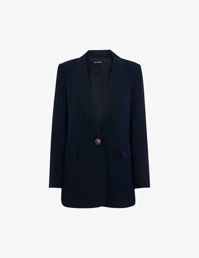 WHISTLES Womens Navy Single-breasted Peak-lapel Recycled-polyester Blend Blazer
