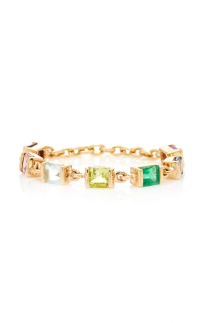 Yi Collection's designs exude a subtle elegance that reflects the designer's personal style. This ring is crafted from polished 14-karat gold with a delicate chain-link band that strung with multicolored princess-cut gemstones. Gift it to someone special this season.
