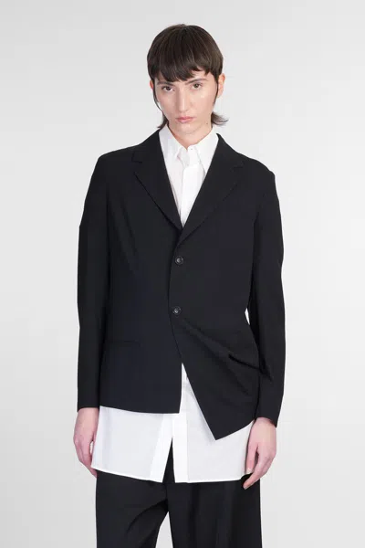Blazer in black wool, classic revers, two buttons closure, long sleeves, welt pocket, asymmetrical cut, 100% wool, Made in Japan