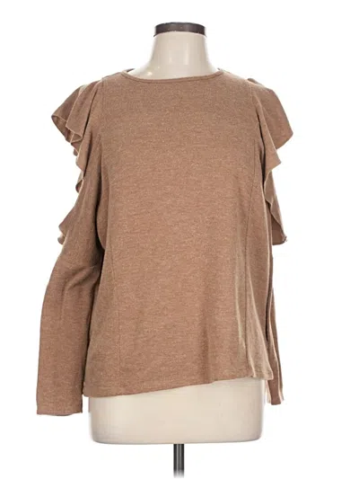 Zara W&B Collection Pullover Sweater, Size: Large. Item Details: Brown, Ruffles Neckline, Long Sleeve, Women's Tops