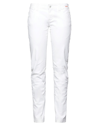 plain weave, brand logo, embroidered detailing, solid color, low waisted, belt loops, straight leg, slim-leg pants, zipper closure, 1 button, five pockets, skinny model , Color: White , Size: 30
